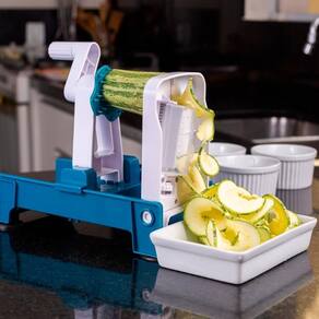 O espiralizador de legumes da linha Gourmet da Prana é um prático utensílio para fazer macarrão vegetariano, saladas variadas ou recheio de pizza.