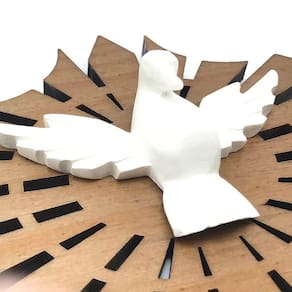O Adorno do Divino Espirito Santo de Parede é perfeito para se ter em casa. Com um visual que traz traços artísticos únicos, bem como um design clássico aliados a elementos modernos, ele transmite beleza e requinte, sem deixar de lado a sua conexão com a fé.