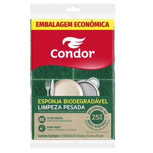 A primeira esponja totalmente biodegradável do Brasil! Possui maior durabilidade e é feita com matérias-primas que se decompõem até 25x mais rápido na natureza. Constribui assim para um futuro mais limpo e consciente e o melhor: mantendo a mesma eficiência de uma esponja comum para lavar louças. Então vamos cuidar do nosso planeta? Garanta agora a mesmo a sua esponja biodegradável Condor! Marca: Não Informado