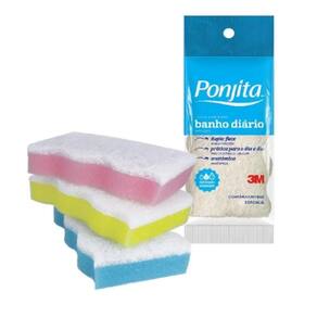 Esponja De Banho Ponjita Leve 3 Pague 2 - H0002271700 - 3m Esponja de Banho Ponjita Leve 3 Pague 2 - H0002271700 - 3M Descrição: A Esponja de Banho Diário Ponjita mantém sua pele sempre saudável e bem cuidada. Sua face colorida limpa suavemente, enquanto a fibra branca massageia e tonifica a pele, ativando a circulação, abrindo os poros e eliminando as impurezas da pele. Limpeza, relaxamento, frescor e bem-estar. Prática para o dia a dia e com formato anatômico, a Esponja de Banho Diário Ponjita também remove as células mortas. Produto disponível nas cores rosa, amarela e azul.