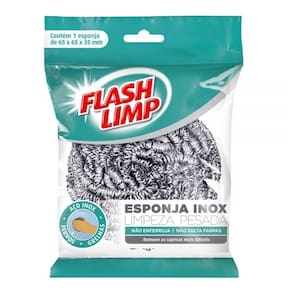 A Esponja Inox Limpeza Pesada da FlashLimp é feita de filamento de aço inox: não enferruja, não machuca as mãos e ainda é extremamente macia!