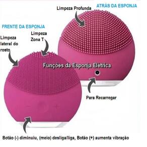 Esponja de limpeza facial mini massageador elétrico Esponja de limpeza facial com controle de intensidade massageadora. Recomendado para todos os tipos de pele. Ajuda a eliminar a oleosidade, dá sensação de conforto e auxilia na hidratação. Super recomendada pelos especialistas.