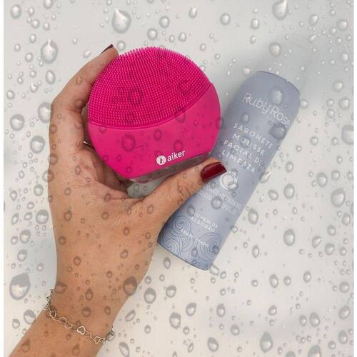 -escova de limpeza facial para todos os tipos de pele. -elimina 99,5% da oleosidade em apenas 1 minuto. -possui filamentos de silicone de diferentes espessuras que removem as impurezas retidas ao longo do dia com sua tecnologia que libera até 8 mil vibrações por minuto, que garante a remoção das células mortas e a purificação dos poros de maneira suave e completa para uma pele mais macia e luminosa. Ação -tecnologia t-sonic: eliminam as impurezas acumuladas nos poros por meio de até 8 mil pulsações que limpam a pele profundamente Conselho de aplicação -aplique o produto de limpeza no rosto molhado. -molhe a escova de limpeza facial e ligue o aparelho. -faça movimentos circulares durante 1 minuto. -enxágue o rosto e a escova em seguida. -use 2 vezes ao dia. Itens incluso: 1-aparaelho 1-cabo usb Sabonete ruby rose nuvem de algodão Sabonete mousse facial de limpeza nuvens de algodão 150ml-ruby rose o sabonete mousse facial de limpeza nuves de algodão ruby rose remove a maquiagem e limpa a pele profundamente. Com ação revitalizante e antioxidante, promove uma pele hidratada, limpa e bonita. A espuma cremosa tem o toque suave e aveludado e serve para todos os tipos de pele. O sabonete mousse facial de limpeza é um demaquilante cremoso e aveludado que remove os resíduos da maquiagem e promove uma pele limpa, hidratada e bonita.