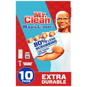 Mr. Clean Magic Eraser Extra O lavador durável é 4X mais forte com DURAFOAM. Desempenho de limpeza versus o spray de alvejante de uso geral líder Este lavador de limpeza é resistente à sujeira, em toda a casa Limpador de superfície, limpador de parede, limpador de banheira, limpador de porta de forno, apaga marcas em interruptores de luz, portas e muito mais O Mr. Clean Magic Eraser fornece uma poderosa limpeza com água sozinha Nenhum produto químico severo adicionado Borrachas mágicas também estão disponíveis em Bath, Kitchen e Marca: Não Informado