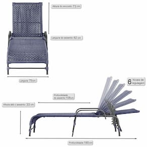 O encosto reclinavel permite ajuste perfeito para seu conforto, enquanto a corda nautica trancada proporciona um toque elegante e ergonomico.
