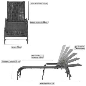 Espreguiçadeira Catar Corda Náutica Jardim Piscina Alumínio Preto