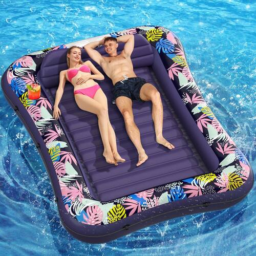 - Característica especial:?Inflatable, travesseiro removível e pesado, porta-copos, viagem, lounge; descrição da faixa etária: adulto; dimensões do produto: 87" L x 63" W; limite de peso: 300 libras; material: vinil; cor: roxo; tamanho: GG; pessoas aplicáveis: várias pessoas