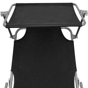 Espreguiçadeira dobrável ao ar livre com dossel, aço de 74 polegadas, preta