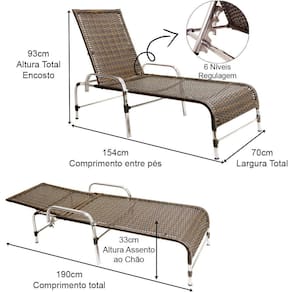 Observações: Você poderá levar as Espreguiçadeiras tranquilamente para o Mar, Rio ou Piscina. Não tem problema colocar ela dentro dágua nestes locais, apenas recomendamos que após colocar, lavar as peças por completo e com água corrente e sabão neutro. Para retirar quaisquer partículas que possam causar algum dano nas Fibras. Lembrando que a estrutura é em Alumínio, não irá enferrujar! As Fibras Sintéticas possuem proteção contra as ações do tempo e Raios UV.