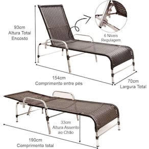 Observações: Você poderá levar as Espreguiçadeiras tranquilamente para o Mar, Rio ou Piscina. Não tem problema colocar ela dentro dágua nestes locais, apenas recomendamos que após colocar, lavar as peças por completo e com água corrente e sabão neutro. Para retirar quaisquer partículas que possam causar algum dano nas Fibras. Lembrando que a estrutura é em Alumínio, não irá enferrujar! As Fibras Sintéticas possuem proteção contra as ações do tempo e Raios UV.