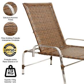 Observações: Você poderá levar as Espreguiçadeiras tranquilamente para o Mar, Rio ou Piscina. Não tem problema colocar ela dentro dágua nestes locais, apenas recomendamos que após colocar, lavar as peças por completo e com água corrente e sabão neutro. Para retirar quaisquer partículas que possam causar algum dano nas Fibras. Lembrando que a estrutura é em Alumínio, não irá enferrujar! As Fibras Sintéticas possuem proteção contra as ações do tempo e Raios UV.