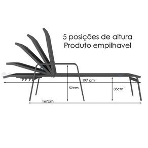 Profundidade: 167cm com o encosto levantado e 197cm com o encosto baixado totalmente