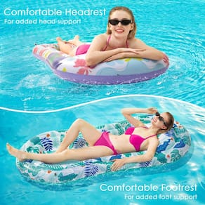 - Flutuadores de piscina com apoio de cabeça e apoio para os pés: com apoio para a cabeça e apoio para os pés, as balsas de piscina oferecem muito apoio e muito conforto; a superfície inferior de malha é confortável e respirável, não gruda na pele; desfrute de relaxamento e resfriamento por horas na estação quente