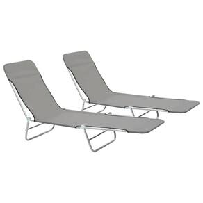 - Cor: cinza- - Material: aço revestido a pó + tecido Oxford 600D com revestimento PE- - Dimensões: 22" x 71,7" x 9,6" (L x P x A) - - Capacidade máxima de carga: 264,6 libras- - Encosto ajustável- - A entrega inclui 2 espreguiçadeiras dobráveis- - Tecido: poliéster: 100% - - California Proposition 65