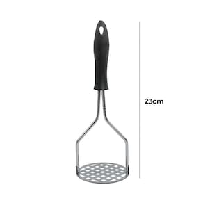 Especificações Técnicas: - Modelo: Amassador De Batata Inox - Material: Plástico, Aço Inoxidável - Cor do Cabo: Preto - Dimensões Aprox.: 23cm Comprimento X 8cm Diâmetro do Amassador - Peso Aprox.: 90g