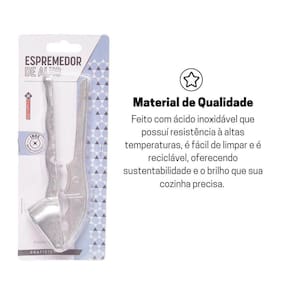 Para quem ama a arte de cozinhar, o espremedor / amassador de alho da Univendas é um item indispensável para se ter em sua cozinha. Fabricado em Aço Inoxidável de alta qualidade e durabilidade, seu material oferece maior durabilidade durante o uso. Seu cabo garante um manuseio seguro do item e uma ponta com uma superfície com pequenos furos garante que diversos alimentos sejam amassados. Desenvolvido para triturar alho com velocidade e praticidade, o Espremedor de Alho é para quem precisa cozinhar na correria do dia a dia.
