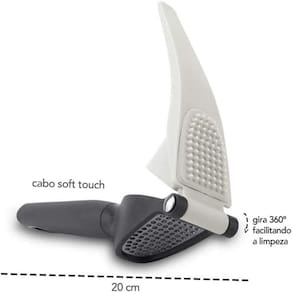 O espremedor de alho com cabo soft touch proporciona mais segurança e conforto durante o manuseio. O espremedor é também indicado para cebola, evita o contato desses alimentos com as mãos, além de agilizar essa tarefa para quem cozinha. A parte em cor cinza clara gira completamente, o que permite que ela seja usada tanto para espremer o alho quanto para removê-lo de dentro do espremedor. A decoração Cool Grey, em tons de cinza, deixa a peça ainda mais moderna.
