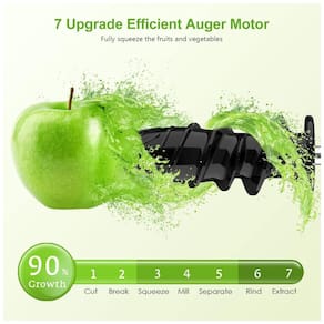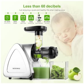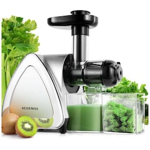 Espremedor de frutas de mastigação lenta Kedemas, 150W, com função reversa, motor silencioso (menos de 60dB), fácil de montar e limpar, com design compacto e elegante. Extrai o máximo de nutrientes de vegetais, frutas e folhas verdes.Motor c/ dupla rotação