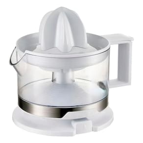 Espremedor de frutas elétrico com 100W de potência e capacidade de 850ml. Ideal para laranjas e limões. Retém bagaços e sementes.Motor c/ dupla rotação