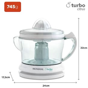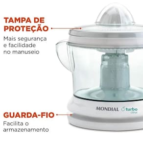 Possui um acionamento automático garantindo mais praticidade, basta pressionar a fruta sobre a castanha para o espremedor começar a funcionar sem botões ou complicações. E o melhor, você tem controle total do preparo com um produto fácil de usar, desmontar e limpar. Seu acabamento em plástico resistente é durável, leve e de fácil manuseio. A jarra transparente com bico direcionador facilita o serviço, evitando sujeiras e respingos.