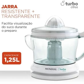 OEspremedor De Frutas Mondial Turbo 1,25l 220V é ideal para quem valoriza saúde, praticidade e eficiência no dia a dia. Comdesign moderno na cor branca, ele é compacto, funcional e perfeito para qualquer cozinha. O modelo permite o preparo de sucos em grandes quantidades, ideal para toda a família. O grande diferencial está nomotor reversível, que gira nos dois sentidos para extrair o máximo de suco da fruta, reduzindo o desperdício e aumentando o rendimento.