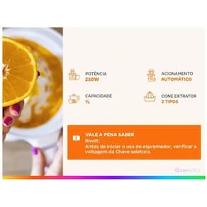 Extrator de frutas com dupla rotação, copo com peneira, desmontável e fácil de limpar, porta-fioMotor c/ dupla rotação