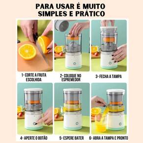 Espremedor De Frutas Recarregável Portátil Cor: Branco Você já pensou em ter um suco frescante e delicioso a qualquer hora e em qualquer lugar Com o novo processador de suco portátil, agora isso é possível Este processador de suco é a solução ideal para quem busca uma maneira rápida e fácil de preparar um suco com diferentes frutas. Você pode levá-lo aonde quiser, seja em casa, no escritório, no piquenique ou até mesmo em um churrasco em família. A bateria duradoura permite que seja Utilizado fora da tomada, e você pode carregá-lo com qualquer dispositivo USB e power bank. Não se preocupe com a limpeza, pois é muito fácil e rápido de lavar. Além disso, você pode preparar o seu suco em poucos minutos, sem fazer sujeira. Imagine como seria incrível poder preparar um suco frescante e delicioso em qualquer lugar e a qualquer hora, sem ter que se preocupar com a limpeza ou a falta de energia. ------------------ ATENÇÃO ------------------ Recomendamos carregar por 4 horas antes do primeiro uso, para uso do dia a dia recomendamos uma carga de 2 horas. MODO DE USO: 1- Cortes das frutas que deseja usar. 2- Coloque no copo, respeitando o limite de capacidade. 3- Feche a tampa corretamente. 4- Pressione a o botão e aguarde. Em poucos minutos o seu suco estará pronto IMPORTANTE: Ao fazer o suco, não ultrapasse a capacidade limite, pode danificar o produto. ------------------ ------------------ Como funciona o Processador de Suco Portátil R: O Processador de Suco Portátil funciona com uma bateria duradoura que permite que você faça sucos em qualquer lugar sem esta conectado na tomada. Ele é carregado via um dispositivo USB ou Power Bank, e pode processar diversas frutas diferentes em poucos minutos. Como eu lavo o Processador de Suco Portátil R: A limpeza do Processador de Suco Portátil é fácil e rápida. Basta lavar as peças removíveis com água e sabão neutro, e secar bem antes de guardá-las. Quais frutas eu posso usar com o Processador de Suco Portátil R: O Processador de Suco Portátil pode ser com diversas frutas diferentes, incluindo laranjas, limões, maçãs, peras, morangos e muito mais. Experimente combinações únicas para criar sucos frescantes e saudáveis. ------------------ ESPECIFICAÇÕES ------------------ Altura: 23.7cm Largura: 11.2 cm Frequência: 7,4V Potência: 45W Voltagem: 110V ------------------ CONTEÚDO ------------------ 1x Máquina de fazer suco. Marca: Não Informado Ean: 7792997308025