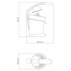 - A alça espremedora conta com um exclusivo braço articulado para espremer sem esforços até a última gota de todas as frutas cítricas, do menor do limão a maior das laranjas, sem precisar trocar os cones;