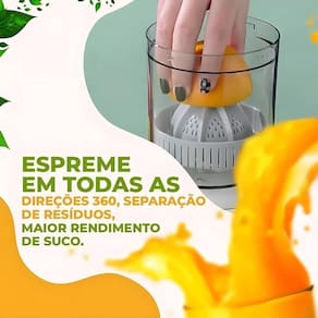 Sistema de velocidade lenta para maior rendimento de suco. Recarregável USB, sem fio e portátil. Espreme em todas as direções 360. Separação de resíduos. Compatível com laranjas, maçãs, romãs e peras.Motor c/ dupla rotação