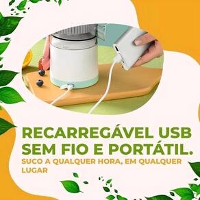 - Maior rendimento do suco: Com um sistema de velocidade lenta. Ele fornece o sabor puro da fruta. - Fácil de usar e limpar: Tudo destacável para fácil separação e limpeza. - Recarregável USB, sem fio e portátil. Suco a qualquer hora, em qualquer lugar. - Faça suco usando apenas um botão, economize tempo e esforço, sem necessidade de utilizar as mãos. - Espreme em todas as direções 360, separação de resíduos, maior rendimento de suco. - Não apenas laranjas, mas também maçãs, romãs e peras podem ser cortadas ao meio para fazer suco.