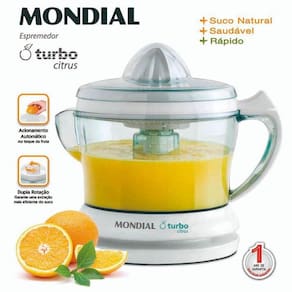 O Espremedor Turbo Citrus E-01 da Mondial possui design moderno com acionamento automático, guarda fios, jarra transparente com capacidade de 1,25 litros que vai diretamente à mesa e é desmontável para facilitar a limpeza e para a segurança da sua família possui trava.