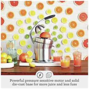 Espremedor de sucos Breville 800CPXL, estilo profissional, cone de sucos em aço inoxidável, sistema de braço ativo, filtros de aço inoxidável para controle de polpa variável e bica de suco com sistema anti-gotejamento.