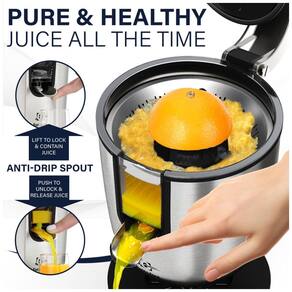 Espremedor de frutas cítricas elétrico com motor de 160W, elevação de bico de bloqueio, fácil de usar e limpar, com ventosas para fixação.Acessórios