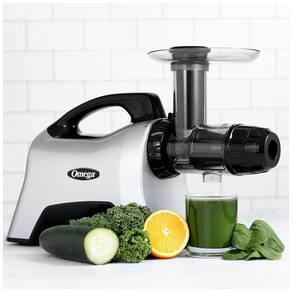 Espremedor de sucos Omega NC1000HDS com potência de 200W, 5 configurações, tecnologia de prensa fria para extração máxima de nutrientes, sucos de maior duração e centro de nutrição para diversas funções.Vendido e entregue por Ecletiq