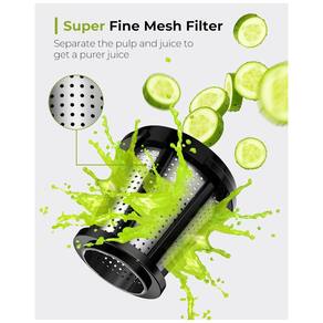 Espremedor de Sucos Slow Masticating com 2 velocidades e função reversa. Desmontagem fácil e limpeza segura.