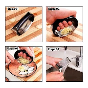Para usar, basta colocar o amassador sobre os dentes de alho e fazer um movimento de gangorra enquanto pressiona. Outra vantagem é que o espremedor consegue triturar várias cabeças de alho de 1 só vez, sem a necessidade de executar a tarefa em etapas.