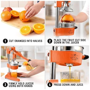 Espremedor manual profissional de aço inoxidável para laranjas, limões, limas e toranjas. Design ergonômico, efeito de alavanca e gravidade para extração eficiente.Vendido e entregue por Ecletiq