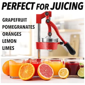 Extrai o máximo de suco possível espremedor de sucos mais eficiente e de qualidade profissional. Obtém o máximo de suco de laranjas, limões, limas, toranjas e outras frutas, sem sementes. Basta puxar a alça confortável e firme para baixo para obter os sucos cítricos mais rápidos e fáceis, enquanto suas mãos ficam limpas. Extrator de prensa manual de grau Feito de ferro fundido durável e resistente, com design ergonômico. Este espremedor de frutas cítricas de aço inoxidável usa efeito de alavanca e gravidade para fazer o trabalho com pouco esforço. A ação da alavanca praticamente faz o trabalho por você. Capacidades de britagem potentes e seguras. Esmague e espreme uma variedade de pequenas frutas e vegetais no conforto da sua cozinha. Mais frutas para desfrutar do que seu espremedor portátil o copo de de diâmetro permite que seja com vários tipos e tamanhos de frutas, ele pode lidar com a maior parte das toranjas maiores. Mais fácil do que espremedor de frutas manuais conhecidos como cotovelos mexicanos. Você e sua família vão adorar os sucos saudáveis e nutritivos que podem obter de maçãs, abacaxi, limões Meyer, limas Key, limaquats, limas mexicanas, limões Eureka ou Lisbon, limões cítricos Rangpur ou Tahiti, da Flórida, Califórnia ou no exterior