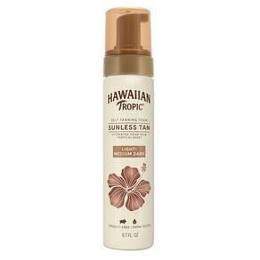 Espuma autobronzeadora leve/média Hawaiian Tropic Sunless Bronzeador, 6,7 onças | Autobronzeador leve, autobronzeador médio, bronzeador sem sol, espuma bronzeadora sem sol, 6,7 onças — Obtenha um bronzeado perfeito e sem riscos — Esta mousse bronzeadora leve e não pegajosa é resistente a transferências e seca rapidamente — Testado e aprovado por dermatologistas — Nosso autobronzeador é a maneira fácil e segura de obter um bronzeado sem riscos - HIDRATE SUA PELE PARA OBTER UM BRILHO SAUDÁVEL — Esta espuma bronzeadora sem sol é infundida com aloe e vitamina E — Certificada pela PETA e isenta de crueldade — Nunca testamos em animais - PERFUME TROPICAL HAVAIANO ICÔNICO — Esta espuma autobronzeadora com aroma tropical celebra os vegetais da ilha do Havaí