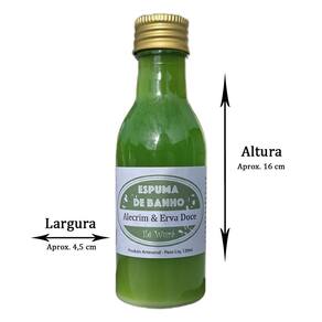 Espuma banho ilê wurá alecrim e erva doce 120ml banheira spa Espuma de banho alecrim e erva doce Ideal para lembrancinhas, eventos, festinhas, hidro, jacuzzi, banheira, ofurô, spa, hidromassagem, hidroterapia, hotel, massagem, namorados, pousada, relaxante, resort Conteúdo da embalagem: 1 frasco de 120ml Não testado em animais Indicado para todos os tipos de pele Desfrute de um banho revigorante e relaxante Mergulhe em uma experiência única com a espuma de banho ilê wurá, cuidadosamente elaborada para proporcionar momentos de puro prazer e cuidado. - alecrim: conhecido por suas propriedades estimulantes e revigorantes, o alecrim desperta os sentidos e energiza o corpo, aliviando o cansaço do dia a dia. - erva doce: com seu aroma suave e adocicado, a erva doce acalma e relaxa, promovendo uma sensação de bem-estar e tranquilidade. -----benefícios que você vai amar----- . Pele macia e perfumada: sua fórmula delicada limpa sem ressecar, deixando a pele incrivelmente suave e com uma fragrância deliciosa que dura por mais tempo. . Espuma abundante: crie um banho de imersão perfeito com uma espuma rica e cremosa que envolve seu corpo em um abraço de conforto. . Momento de relaxamento: transforme seu banheiro em um verdadeiro spa, ideal para aliviar o e renovar as energias. . Praticidade: embalagem perfeita para o uso diário ou para levar em viagens. -----modo de uso----- No chuveiro: aplique em uma esponja e espalhe pelo corpo. Na banheira: dissolva uma pequena quantidade ou todo o frasco e agite até obter a espuma desejada. -----recomendações e cuidados----- Mantenha em local arejado, fora do alcance de crianças e longe do calor excessivo. Em caso de irritação, suspenda o uso e consulte um médico. Apenas para uso externo. Evite o contato com os olhos; em caso de contato, enxágue abundantemente com água. Não utilize se a pele estiver irritada ou lesionada.