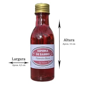 Espuma banho ilê wurá pimenta rosa 120ml banheira spa ofurô Espuma de banho pimenta rosa Ideal para lembrancinhas, eventos, festinhas, hidro, jacuzzi, banheira, ofurô, spa, hidromassagem, hidroterapia, hotel, massagem, namorados, pousada, relaxante, resort Conteúdo da embalagem: 1 frasco de 120ml Não testado em animais Indicado para todos os tipos de pele Sinta a brisa da renovação Transforme seu banho em um ritual de bem-estar com a espuma de banho ilê wurá pimenta rosa com uma fragrância delicada e envolvente de pimenta rosa, este produto de 120ml é perfeito para criar um momento relaxante e revigorante no seu dia. -----por que escolher a espuma de banho ilê wurá pimenta rosa----- . Fragrância deliciosa: a pimenta rosa proporciona um aroma suave, levemente adocicado e floral, ideal para acalmar a mente e revigorar o corpo. . Espuma abundante e cremosa: crie uma nuvem de espuma rica e macia que acaricia sua pele, limpando-a suavemente e deixando uma sensação de frescor. . Pele macia e perfumada: sua fórmula exclusiva limpa sem ressecar, deixando a pele incrivelmente macia, hidratada e delicadamente perfumada por mais tempo. . Momento de relaxamento: perfeito para um banho quente após um longo dia, ajudando a aliviar o e a tensão. . Tamanho ideal 120ml : compacto e prático, perfeito para levar em viagens ou para ter sempre à mão no seu banheiro. -----modo de uso----- No chuveiro: aplique em uma esponja e espalhe pelo corpo. Na banheira: dissolva uma pequena quantidade ou todo o frasco e agite até obter a espuma desejada. -----recomendações e cuidados----- Mantenha em local arejado, fora do alcance de crianças e longe do calor excessivo. Em caso de irritação, suspenda o uso e consulte um médico. Apenas para uso externo. Evite o contato com os olhos; em caso de contato, enxágue abundantemente com água. Não utilize se a pele estiver irritada ou lesionada.