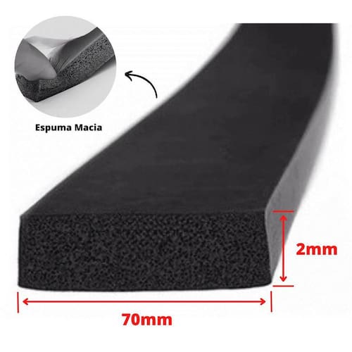 Espuma fita adesiva pvc borracha vedação e=2mmx10 mts preta