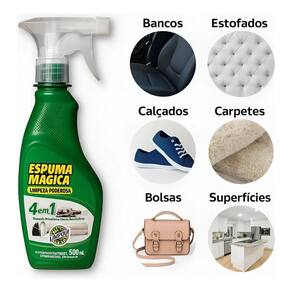 Cansado de manchas teimosas em seus estofados e no interior do seu carro Recupere a beleza e a limpeza impecável em minutos com a espuma mágica, a solução definitiva para um visual renovado Remove manchas difíceis: graxa, gordura, alimentos e sujeira de tráfego desaparecem. Limpeza em casa: praticidade e resultado de salão para seus móveis e veículo. Ação rápida e poderosa: basta aplicar, esperar e remover, economizando seu tempo. Versatilidade incrível: ideal para sofás, tapetes, carpetes, bancos de carro e muito mais Fragrância suave: deixa seus ambientes e carro com um cheirinho agradável. A espuma mágica limpador multi uso 400ml é a inovação que você esperava para o cuidado dos seus bens. Desenvolvida com uma fórmula avançada, ela age diretamente nas fibras, soltando a sujeira e trazendo-a para a superfície de forma fácil e eficaz. Perfeita para quem busca praticidade sem abrir mão da qualidade. Modo de uso: 1. Aplique o produto diretamente sobre a superfície a ser limpa. 2. Aguarde cerca de um minuto para a espuma agir. 3. Retire o excesso com um pano branco limpo e levemente úmido, friccionando suavemente. 4. Repita o processo até que o pano saia limpo, indicando que a sujeira foi completamente removida. Não perca mais tempo e dinheiro com soluções ineficazes. Transforme a limpeza dos seus estofados e do seu carro com a espuma mágica Clique em comprar agora e receba em até 24 horas úteis sua satisfação é nossa prioridade. Marca: Não Informado