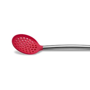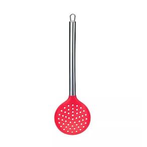 Utilize para retirar do óleo quente o bolinho ou a batata frita e também remove a espuma gerada no cozimento de alguns tipos de alimento. Em silicone com cabo em aço inox e alça para pendurar. O bojo em silicone é resistente ao calor. Não danifica o revestimento de suas panelas. Disponível na cor vermelha. Comprimento 34,5 cm, diâmetro 10,5 cm. Peso 120 g. Ean: 7896502840144