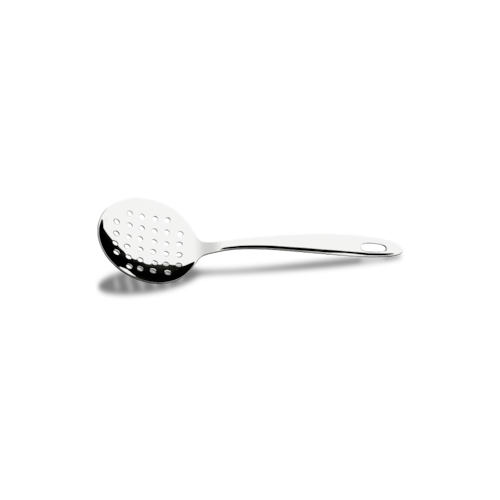 "Um cozinheiro de mão cheia merece instrumentos à sua altura. Pensando nisso, a Brinox desenvolveu a linha Jornata, uma série de utensílios que prezam pela qualidade, resistência, praticidade e elegância. A espumadeira possui base ampla e bordas levemente elevadas, o que lhe permite secar e servir alimentos que foram cozinhados em óleo ou água. Feito em aço inox, o produto é resistente, fácil de limpar, e possui um orifício na extremidade do cabo que lhe permite pendurá-lo e mantê-lo sempre ao alcance das suas mãos. A espumadeira da linha Jornata tem 23cm de comprimento total.