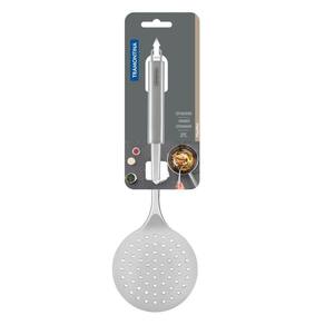 Espumadeira Tramontina Marffim em Aço Inox Frite quitutes deliciosos com mais praticidade e eficiência. Para isso, utilize a Espumadeira Tramontina Marffim em Aço Inox e obtenha muita facilidade na cozinha A peça é fabricada totalmente em aço inox e apresenta alta resistência e durabilidade. A peça que vai completar os seus afazeres e trazer muita facilidade ao seu dia a dia Como usar o produto Use apenas sabão ou detergente e uma esponja macia. Outros tipos de produto como palha de aço, poderão riscar ou prejudicar o brilho da peça. Enxágue cada item a fim de remover totalmente os resíduos dos produtos de limpeza, que, por serem abrasivos, podem danificar o inox. Sempre que possível, use água quente, pois renova o brilho da peça. Após a lavagem, enxugue imediatamente a peça, caso contrário, as substâncias químicas da água (cloro) poderão causar manchas. Evite atrito entre as peças durante o processo de lavagem e no armazenamento, para mantê-la sem riscos. Evite o contato do produto com superfícies quentes, pois elas provocam a descoloração do material. Não guarde a peça em locais úmidos. A umidade também provoca manchas. Descrição técnica: Totalmente feita de aço inox, por isso não solta nenhum resíduo nos alimentos, mantendo-os saudáveis. Altamente durável, mantém suas características originais, preservando a beleza, a higiene e a durabilidade do material. Pode ser lavada diariamente na máquina de lavar louças. Especificação técnica: EAN13: 7891116157992 DUN14: 17891116157999 NCM: 7323.93.00 Peso Líquido: 0,1600 kg. Peso Bruto: 0,1650 kg. Metragem: 0,001631 m³. Dimensões Produto (Compr. X Larg. X Alt.): 365x 118x 31 mm.
