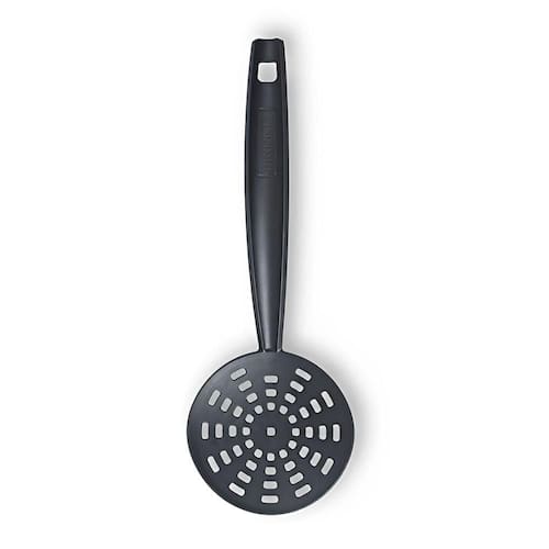Produzida em nylon resistente, suporta temperaturas de até 120C e é indicada para diversos tipos de preparo. O design vazado facilita o escoamento rápido de líquidos e gorduras, deixando o manuseio mais prático e evitando excesso de líquido ao servir. O comprimento do cabo oferece bom alcance, trazendo mais conforto e segurança durante o uso.