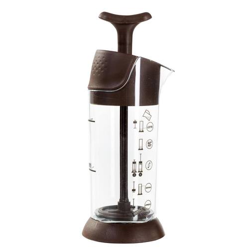 Espumador Cremeira Aerador De Leite Pressca 200Ml Marrom Se você não dispensa um bom café com leite, tenha sempre à mão o Espumador de Leite Pressca. Rápido e fácil de usar, dispensa o uso de eletricidade e permite que você encontre a densidade ideal para preparar seus cappuccinos, mochas e macchiatos. Com o Espumador de Leite Pressca você prepara em casa deliciosas receitas de Latte, Cappucino, Mochas e Macchiatos. Surpreenda seus amigos O Espumador de Leite Pressca é feito em plástico livre de BPA e metais pesados. Seu copo é feito em TRITAN® resistente a quedas e choques. Pode ser aquecido direto no micro-ondas. CARACTERISTICAS TECNICAS: Capacidade: 200 ml Altura: 19 cm Diâmetro: 7 cm Peso: 165 g Facilidade: pode ir no micro-ondas COMO USAR: Rápido e fácil de usar: basta aquecer o leite e mover o êmbolo para cima e para baixo até dobrar o volume da espuma. 1.Colocar o leite até a marca interior do copo transparente cerca de 100 ml 2.Aquecer em micro-ondas até 63ºC sem a tampa e o êmbolo 3.Colocar o êmbolo e agitar fazendo a espuma atingir a marca superior final do copo isto levará cerca de 30 segundos 4.Retirar o êmbolo, e dosar o leite espumado em seu café ou bebida favorita 5.Aprecie Ean: 7898409911682