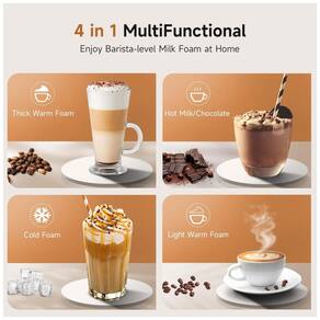 Desfrute de espuma de leite ao nível de barista em casa O batedor de leite comestível tem uma poderosa função de espuma para espuma fria, espuma quente leve, espuma quente espessa, e aquecimento sem espuma. Crie vários tipos de espuma de alternativas lácteas e não lácteas para seus cappuccinos, café com leite, matcha e muito mais. Espumação e aquecimento rápidos Este vapor de leite apresenta uma operação simples e silenciosa que você pode alternar o modo através de um botão para fazer diferentes tipos de espuma de leite perfumada em apenas 2 minutos sem suportar o ruído Os indicadores de LED mostram claramente as funções correspondentes. Grande capacidade atualizada O batedor de leite elétrico pode aquecer até 12,3 oz , 350 ml de leite no café da manhã ou espumar até 5,6 oz , 160 ml de espuma para café com leite, cappuccino, matcha latte, proteína em pó de cada vez. Fácil de limpar Vindo com materiais resistentes a arranhões e um revestimento interno antiaderente, você pode enxaguar este fabricante de espuma de leite com água corrente e secá lo com um pano macio a escova de limpeza macia que acompanha também é capaz de ajudar a limpar manchas difíceis Marca: Não Informado