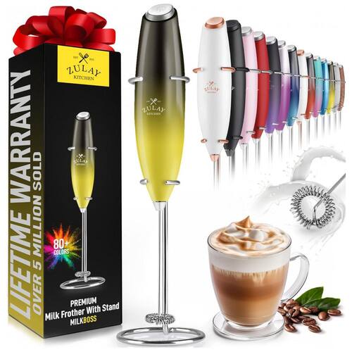 Nós, amantes do café, levamos a sério quando se trata de nosso café. O Milk Boss Frother dá esse toque final profissional ao seu café com leite, cappuccino, macchiato ou chocolate quente. Faça um delicioso creme espumoso para suas bebidas em casa sem uma viagem ao café com seu próprio batedor de leite. Os benefícios de ter seu próprio misturador de batedor de bebidas elétricas são infinitos, você pode fazer o seu melhor café com leite, conhecer o seu melhor gosto. COZINHA, CAFÉ E MAIS Funciona melhor do que um batedor de matcha manual para fazer chá matcha e funciona muito melhor do que garfo ou batedor para o café. Funciona muito bem para misturar bebidas nutritivas de proteína em pó sem recipiente extra, liquidificador ou agitador de garrafas para lavar. Use nosso mini mixer para suas necessidades de uísque e mistura dê um chute nos shakes e smoothies saudáveis, adicionando sabor e mistura de pó ou ovo. QUALIDADE Utilizamos apenas materiais premium. A construção vai durar, apoiada por nossa Garantia Zulay, para nunca enferrujar ou quebrar. Nosso pequeno e eficiente espumante trabalha em todos os tipos de leite meio e meio, creme, soja, amêndoa, caju, avelã, leite integral e outros laticínios, como manteiga ou creme. FÁCIL DE LIMPEZA E LOJA O suporte de metal conveniente e durável oferece fácil acesso para uma qualidade espumosa em segundos. A limpeza para este batedor e espuma matcha é ainda mais rápida. Para limpar, basta colocar o batedor em água corrente quente e ligá lo brevemente instantaneamente Quando zenado no balcão ou na mesa, fica bem ao lado de outros acessórios para café. Nosso poderoso e durável batedor de leite portátil é alimentado por duas pilhas AA não incluídas com um design elétrico compacto que se encaixa facilmente em uma gaveta.